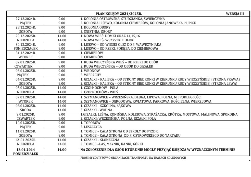 PLAN KOLĘDY 2024/2025